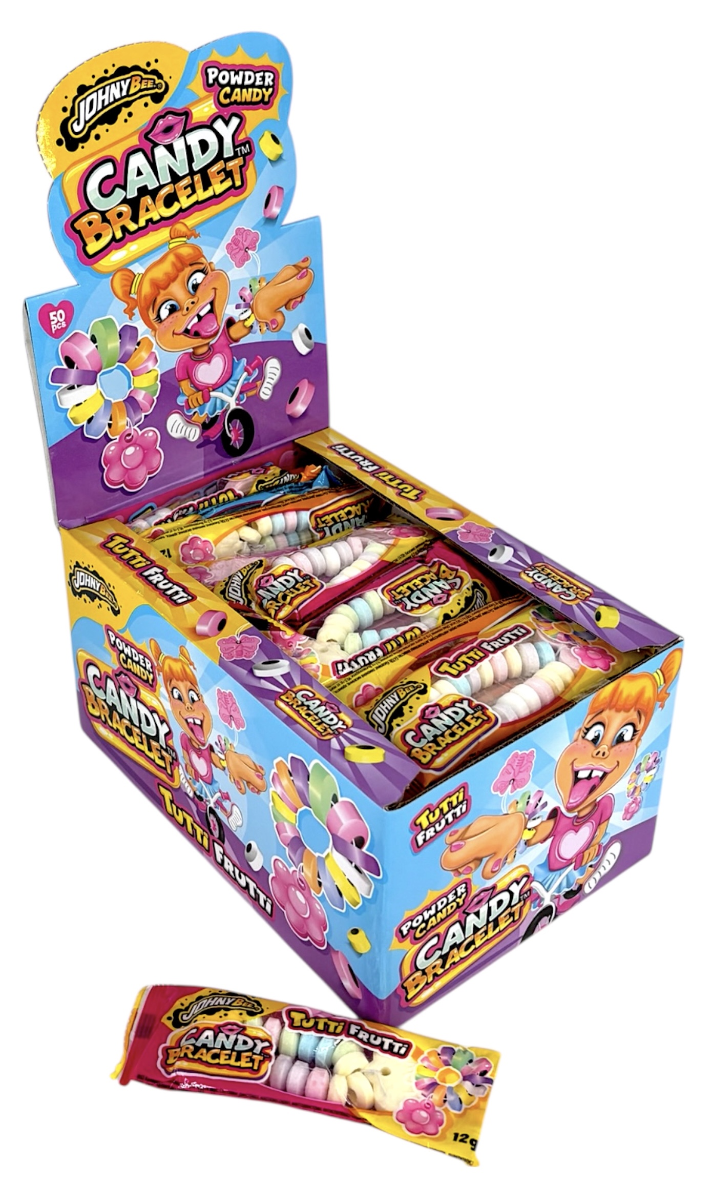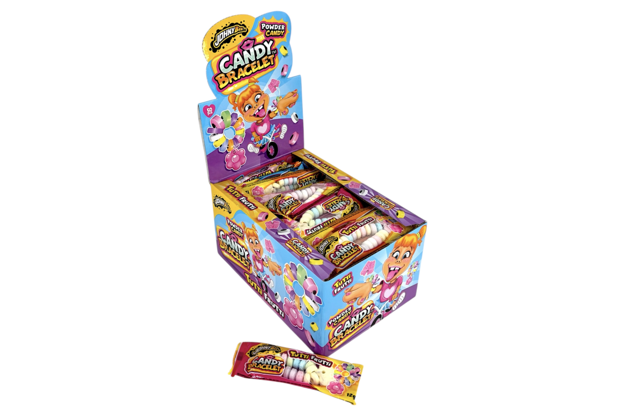 Compressed powder candies "Bracelet with flower, heart and butterfly shaped pendant". Individually wrapped.