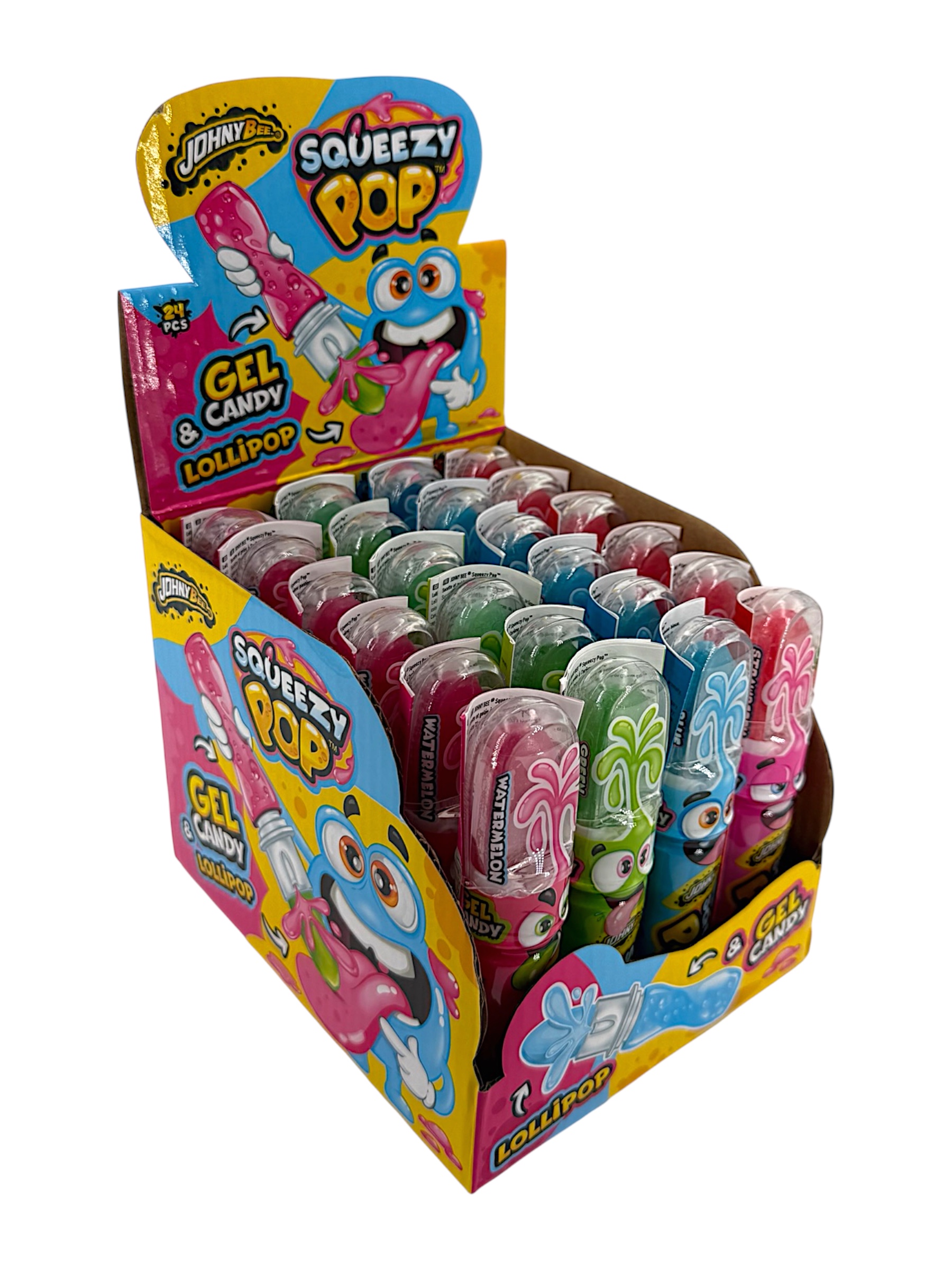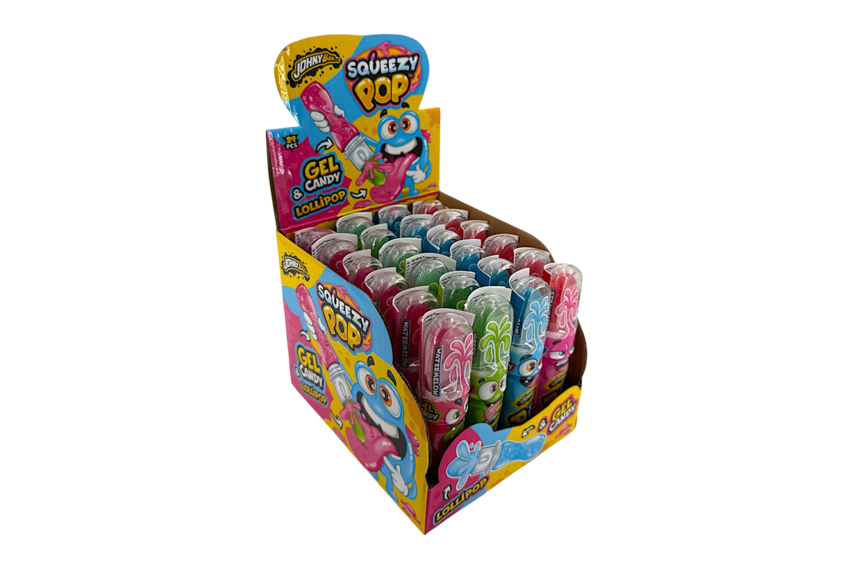 Fruit flavoured lollipop with squeezy gel candy