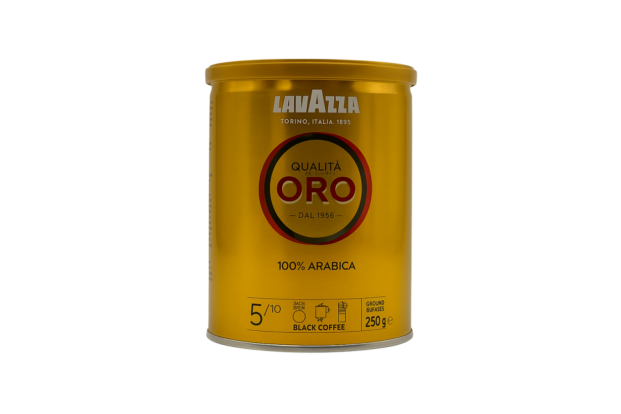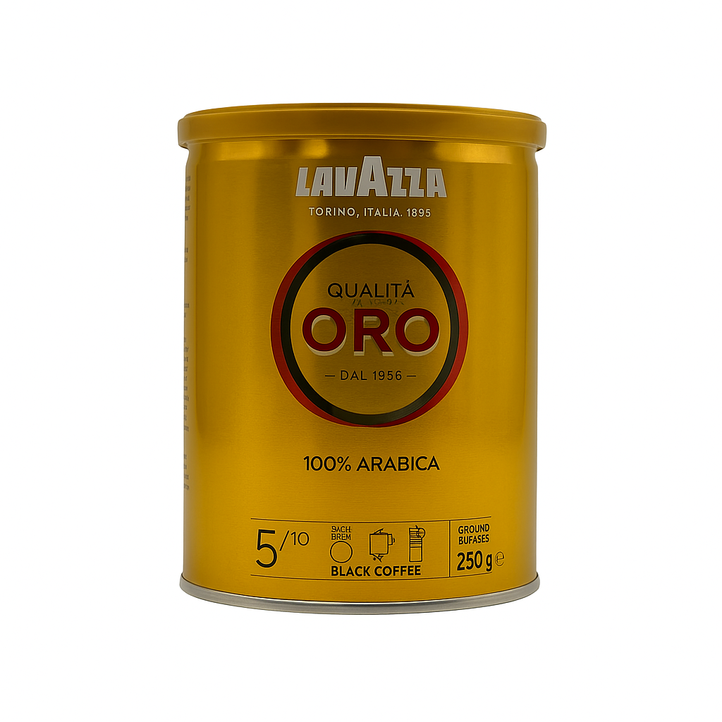 Lavazza Qualità Oro 100% Arabica malta kava 250 g – tikras itališkos kavos klasikos simbolis, gaminamas nuo 1956 metų.